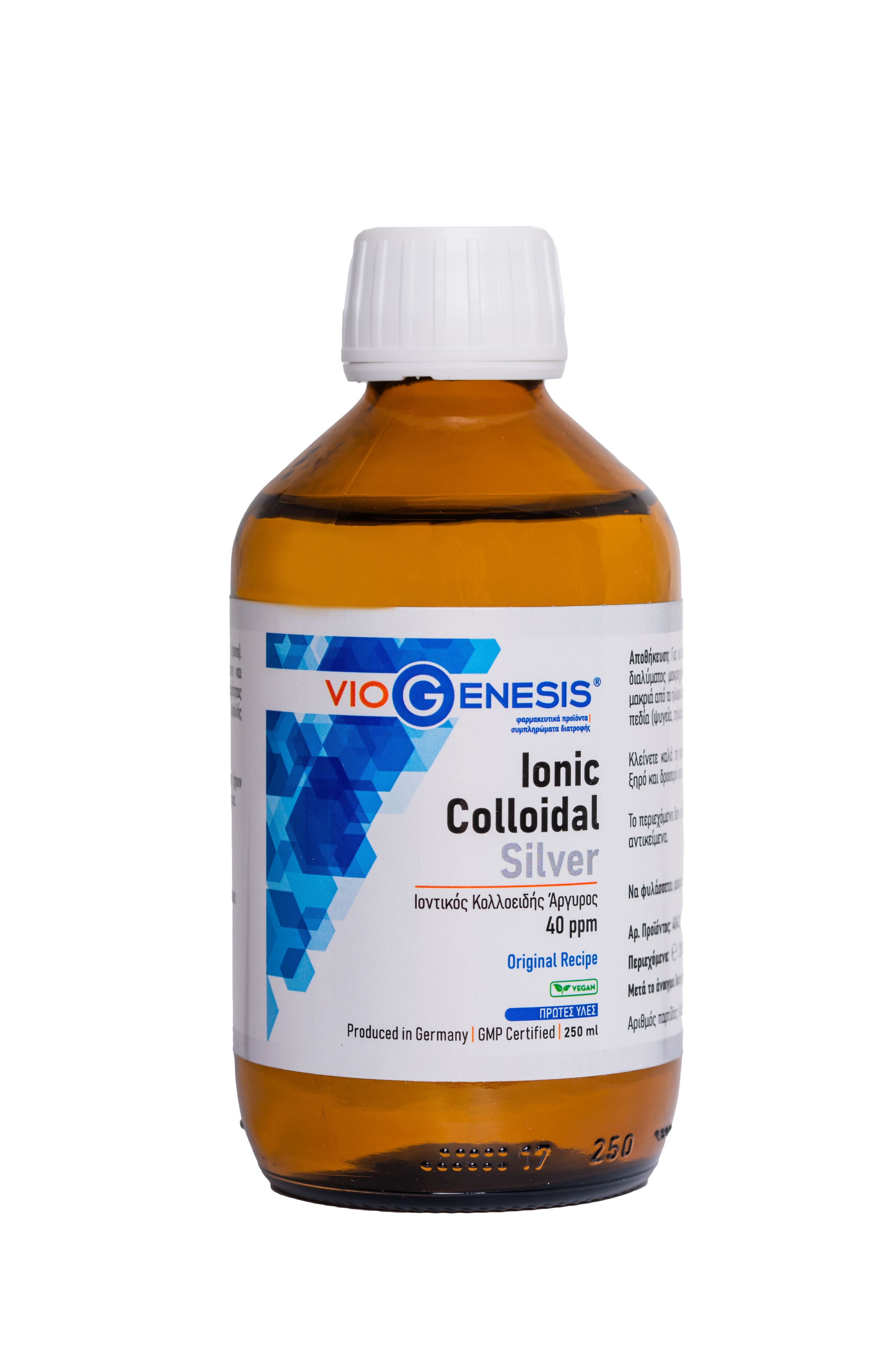 Το Viogenesis Colloidal Silver Ionic είναι ένα υψηλής καθαρότητας διάλυμα κολλοειδούς αργύρου με υψηλό ποσοστό ενεργών ιόντων το οποίο προσφέρει υψηλή αντιβακτηριδιακή δράση.