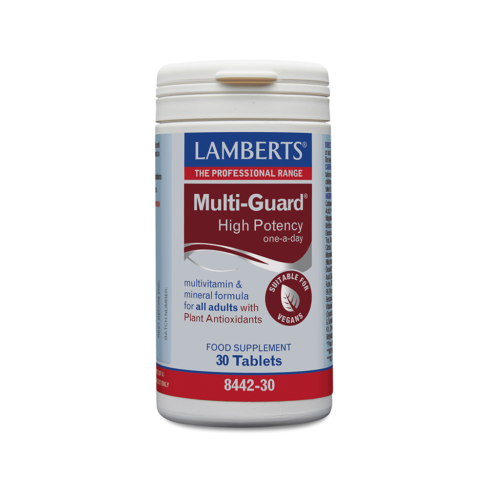 To Lamberts Multi-Guard αποτελεί ίσως την πιο ολοκληρωμένη φόρμουλα βιταμινών και μετάλλων της μιας ταμπλέτας ημερησίως που κυκλοφορεί στην αγορά και είναι κατάλληλη για όλους τους ενήλικες.
